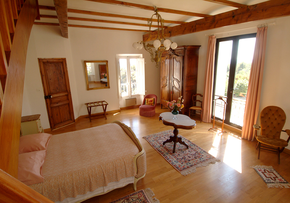 Située au 2ème étage de la tour de la bastide, la chambre d’hôtes La Romantique très spacieuse (50 m2) et lumineuse bénéficie d’une splendide vue panoramique sur le paysage d’Aix et sur les massifs environnants.